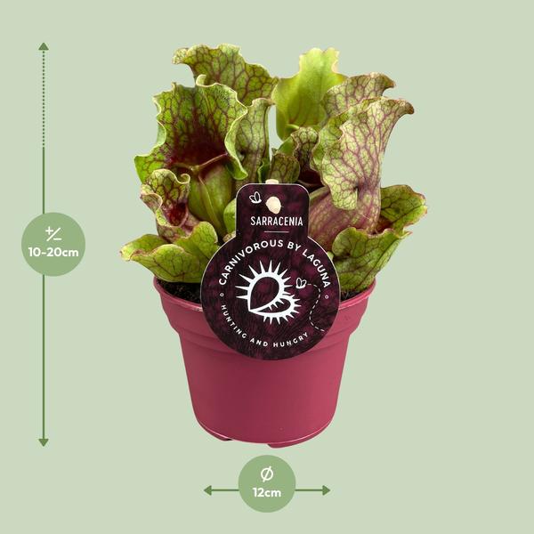 Deze Sarracenia wordt geleverd in een formaat van 12 cm, waardoor het perfect is voor kleine ruimtes of binnentuinen.